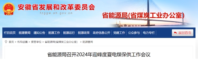 6月4日,安徽省能源局在合肥召开2024年迎峰度夏电煤保供工作视频会。安徽省发展改革委副主任、省能源局局长汪振宇同志出席会议并讲话,相关企业代表作了发言。